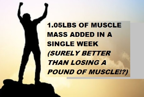 As can be seen from the picture montage I had a great week. Extra retained water – probably due to the mini heat wave – stopped exceptional underlying change directly translating into equally exceptional overall loses. Most remarkably I lost 4.5lbs of body fat and gained 1lbs of muscle in a single week!